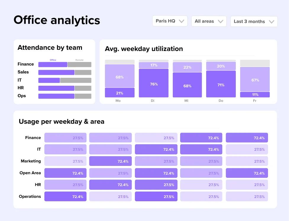 You can connect deskbird data to intranets, access control systems, business intelligence tools, custom dashboards, or internal employee apps — enabling booking visibility, automation, and advanced reporting.