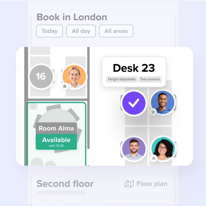 For example, the office event feature enables companies to make working from the office more attractive by enhancing in-person interactions and team bonding. The interactive floor plan enables your staff to find their teammates in the glimpse of an eye when they book a space at the last minute. The features are created to manage your flexible office better, enhance a great employee experience and make them thrive.