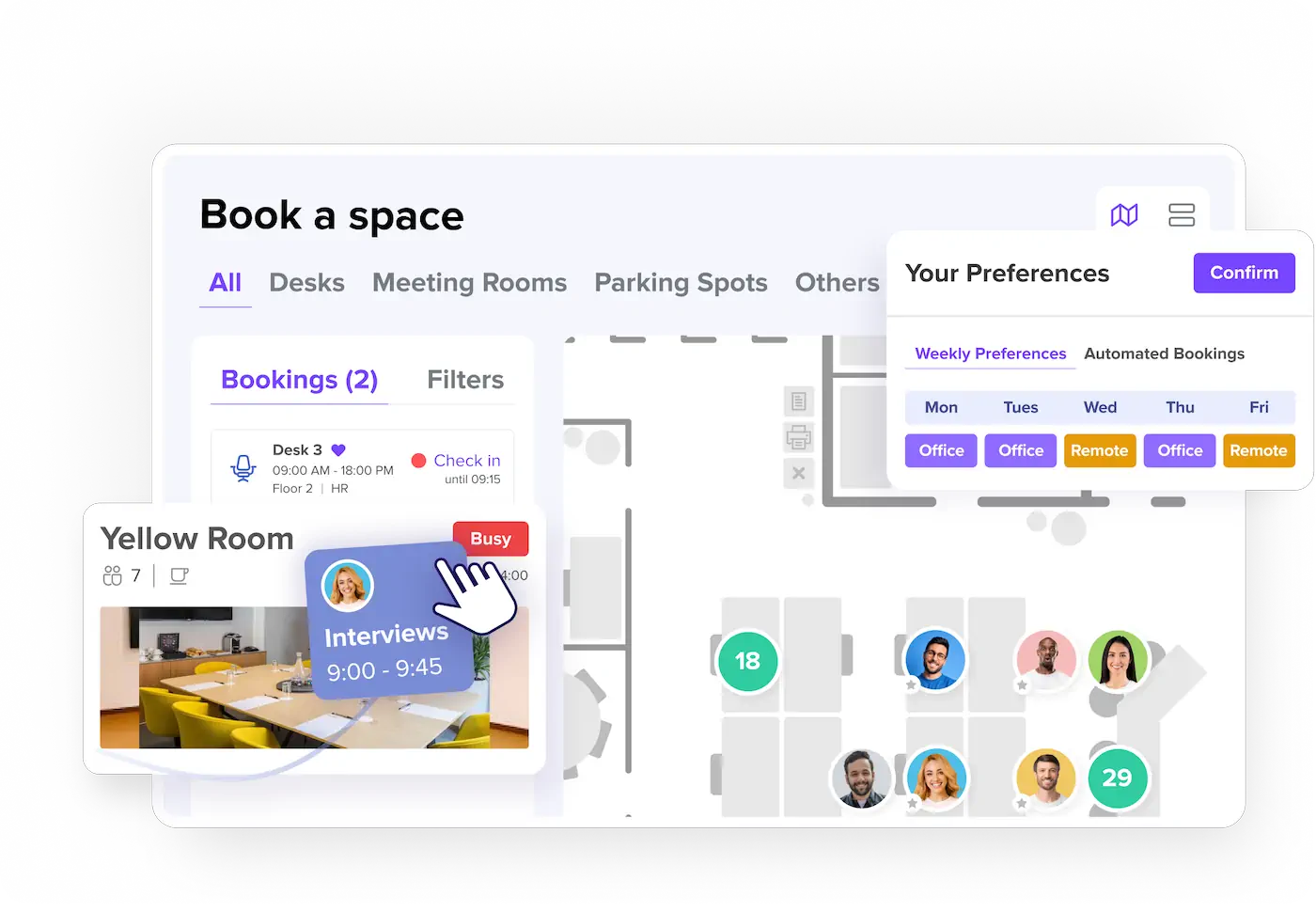 You think your booking tool should be smart enough to know your habits? We think so too. That’s why we’ve automated the booking process for resources based on your typical hybrid work patterns. Say hello to weekly preferences and automated bookings!
