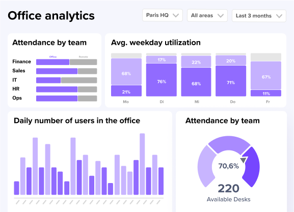 The future of work is all about digitalization, automation, and, above all, addressing employee needs and expectations. Analytics are invaluable for establishing a successful work model and optimizing workspace management. If you're you looking for a digital tool tailored to the needs of your hybrid teams while providing actionable data, our desk booking software is built with a people-centered approach, offering all the information you need to create the best hybrid employee experience.