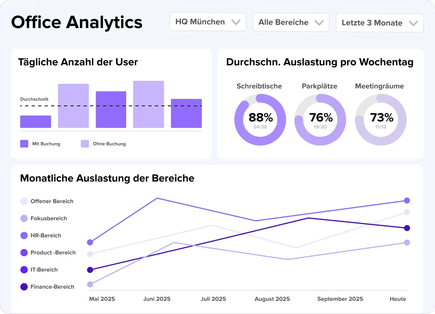 - Belegt den ROI eures Büros mit Reports über Anwesenheit und Büronutzung