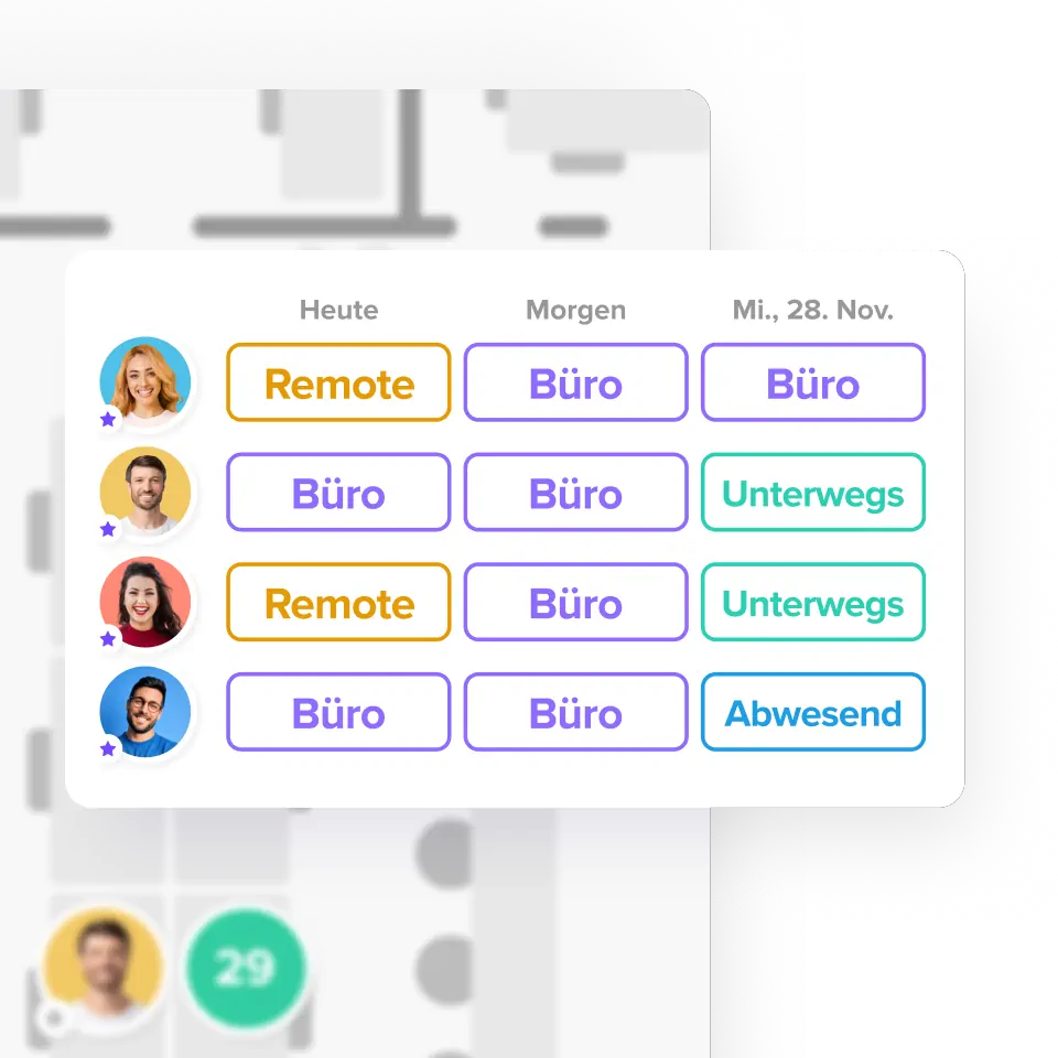 - Sieh, wann dein Team im Büro ist, und buche einen Platz in der Nähe