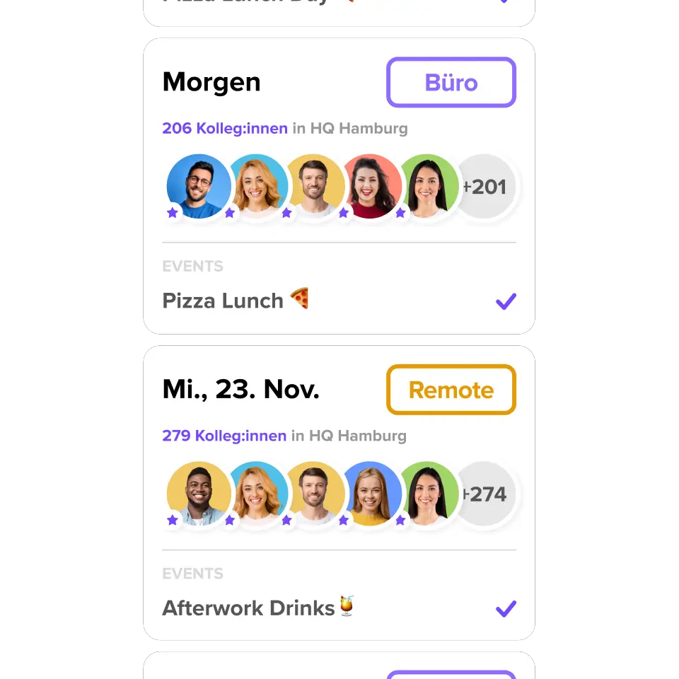 - Sieh, wer im Büro ist, und buche einen Platz in der Nähe