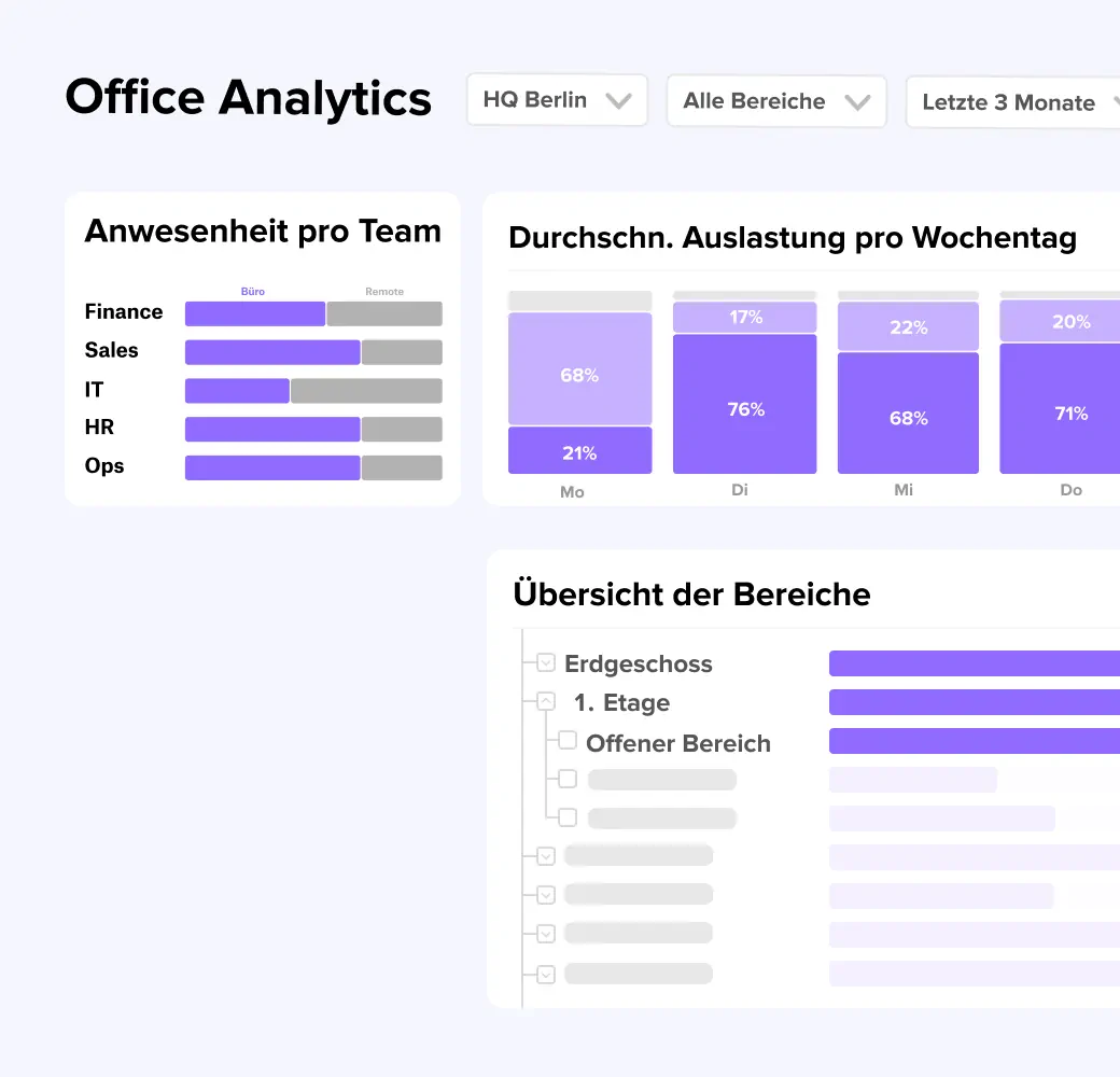 Verfolge, wie jeder Schreibtisch, Raum und Bereich genutzt wird, und unterstütze deine Arbeitsplatzstrategie mit soliden Daten.