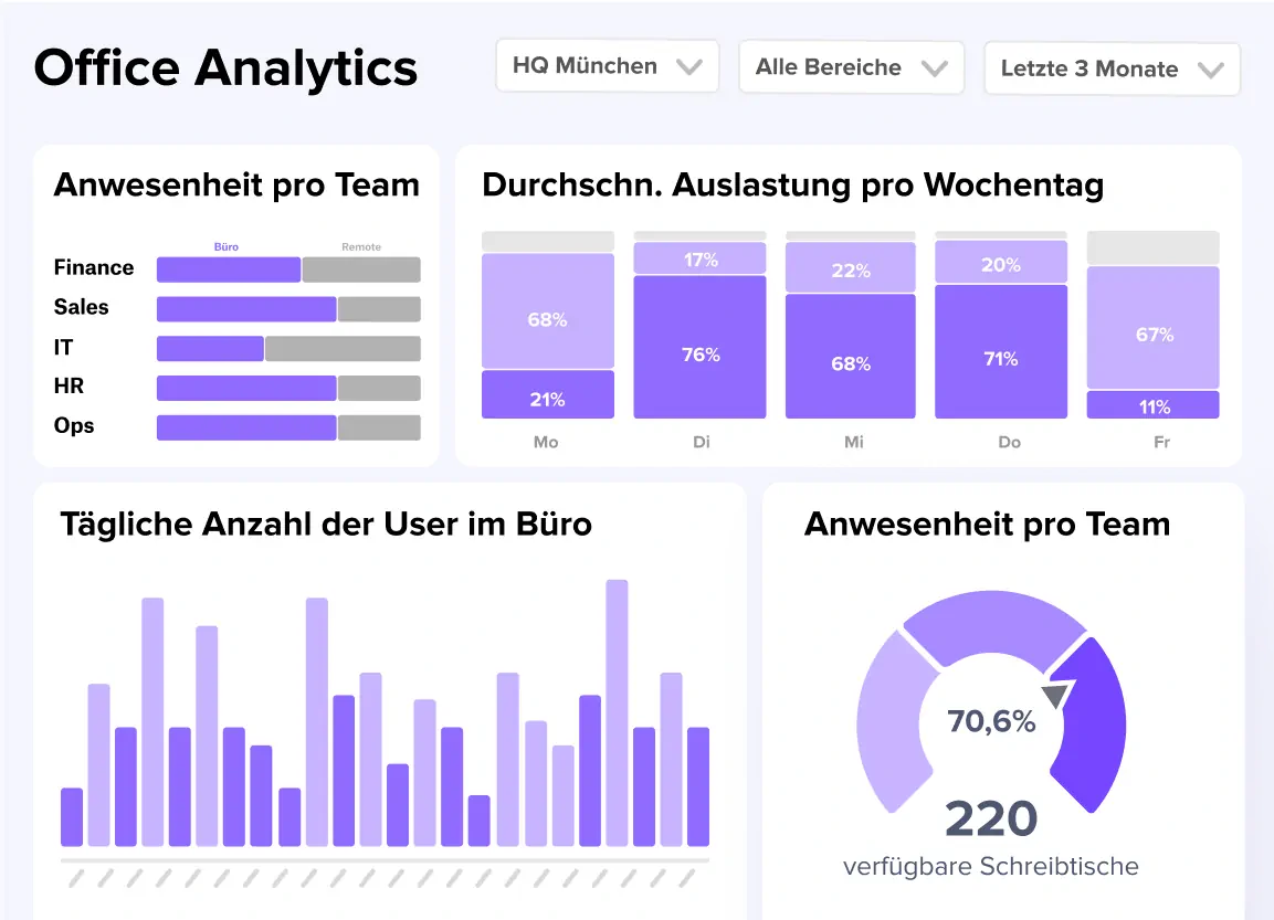Verwalte dein Büro datengestützt und nicht auf der Basis von Vermutungen. Decke versteckte Ineffizienzen auf, senke unnötige Kosten um bis zu 32 % und nutze jeden Quadratmeter für maximalen ROI.