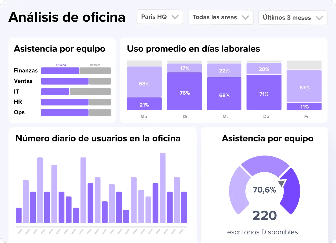 - Utilización del espacio: ¿Se están utilizando de forma más eficaz los recursos de la oficina (puestos de trabajo, salas de reunión, etc.) gracias a la herramienta?