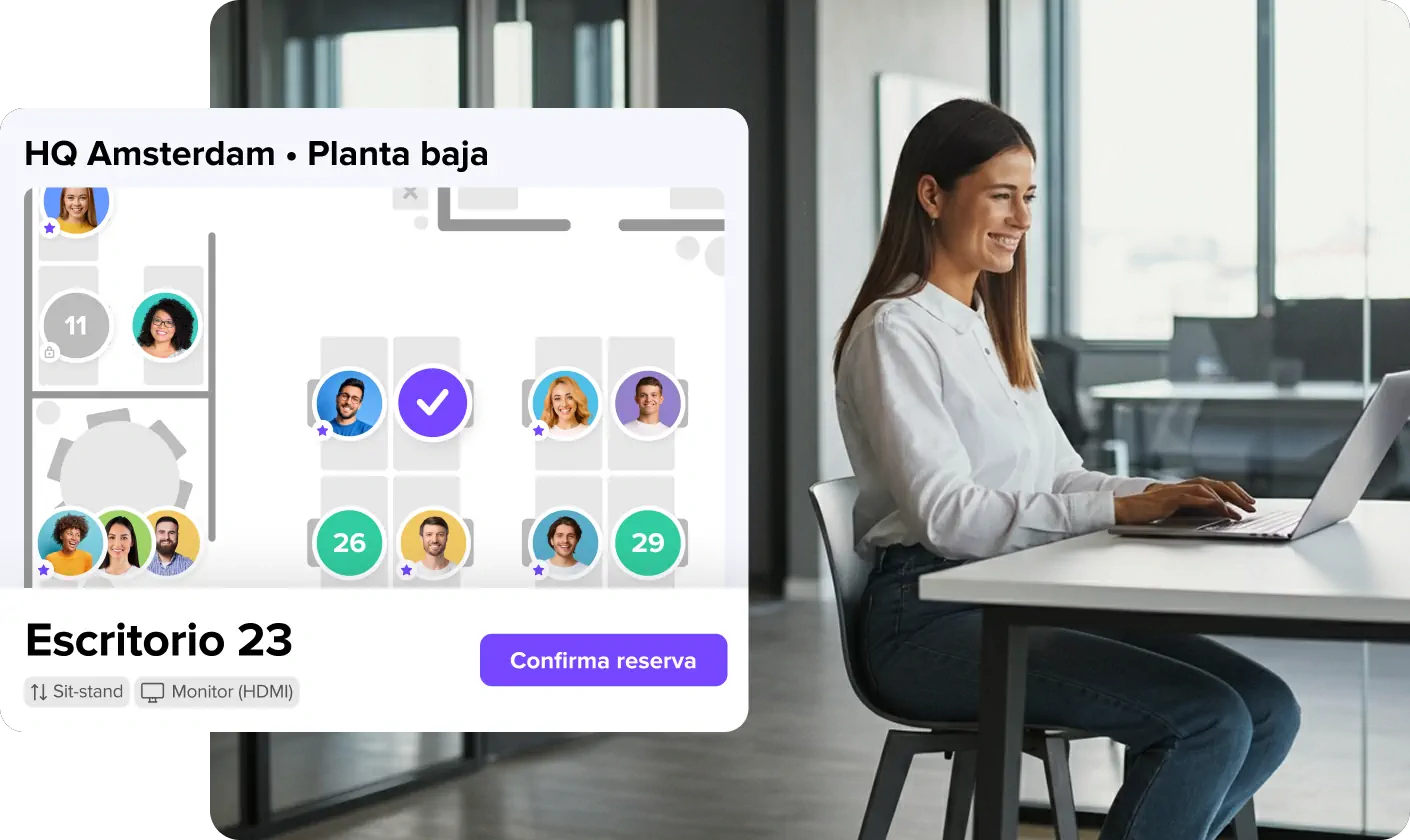 - Herramientas de Hybrid Scheduling: Ayudan a los equipos a coordinar los días de oficina para que las personas adecuadas estén en el mismo lugar al mismo tiempo.