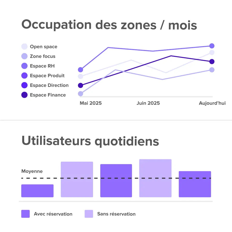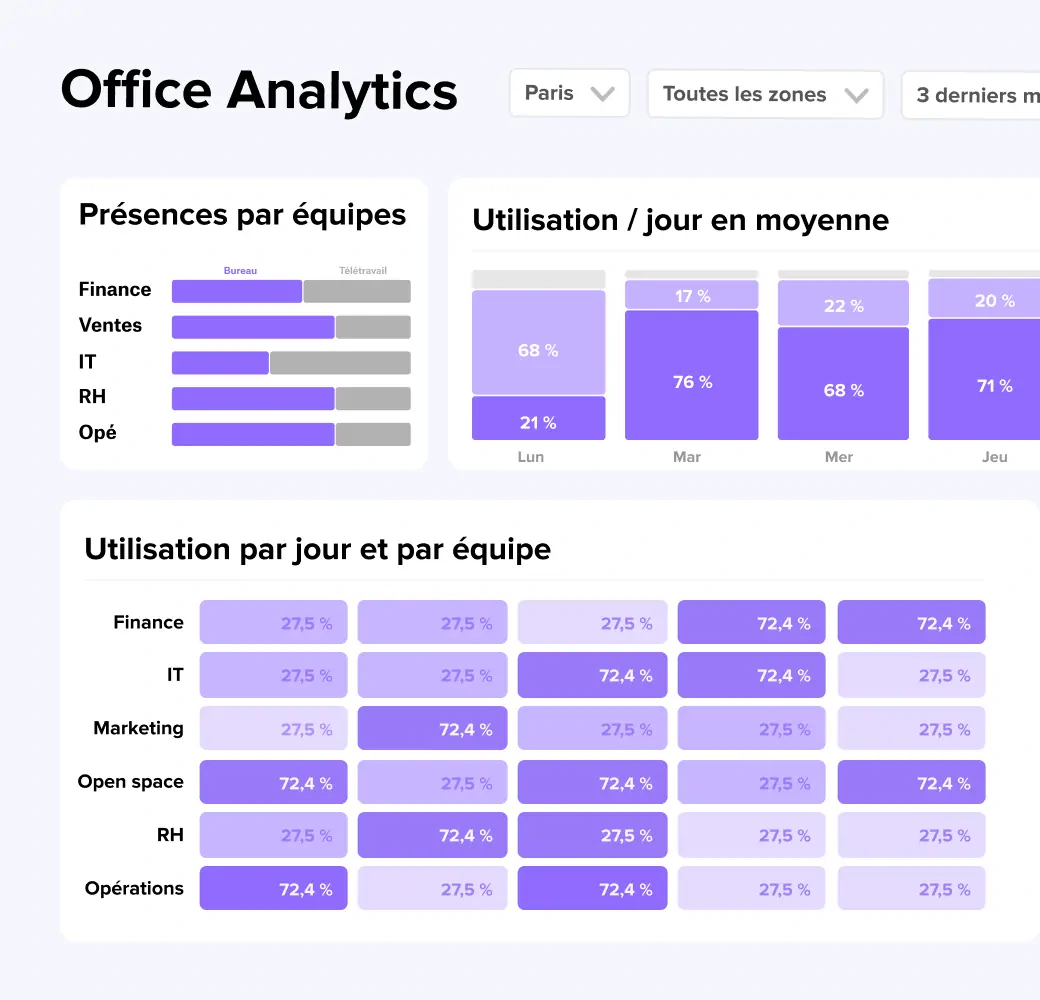 Gagnez en clarté sur la façon dont chaque bureau, salle ou zone est utilisé afin d'améliorer votre stratégie d'espace de travail.