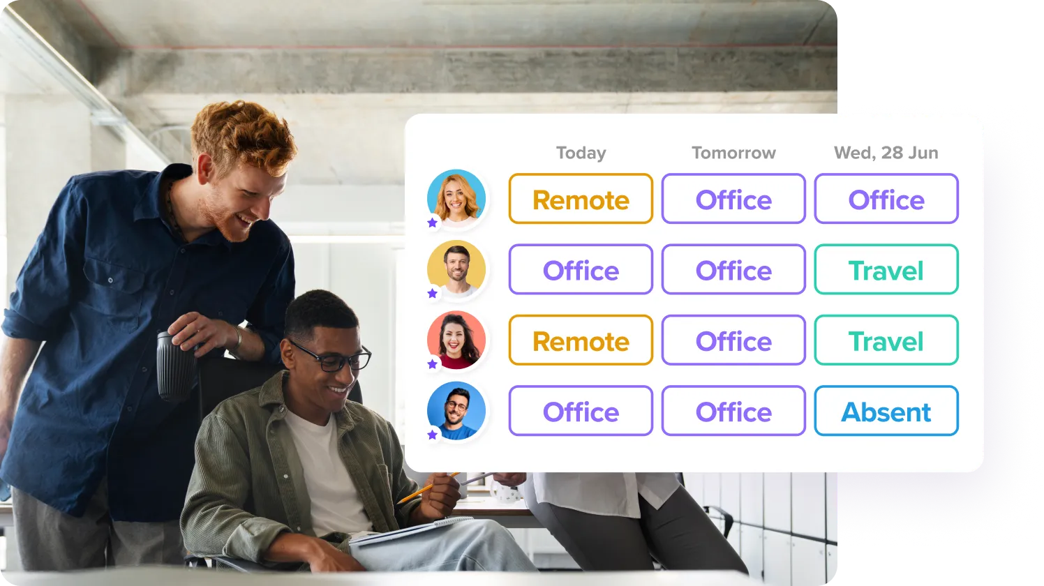 - Assurez-vous que les équipes peuvent facilement se coordonner en leur permettant de voir qui est présent au bureau et où chacun est assis.