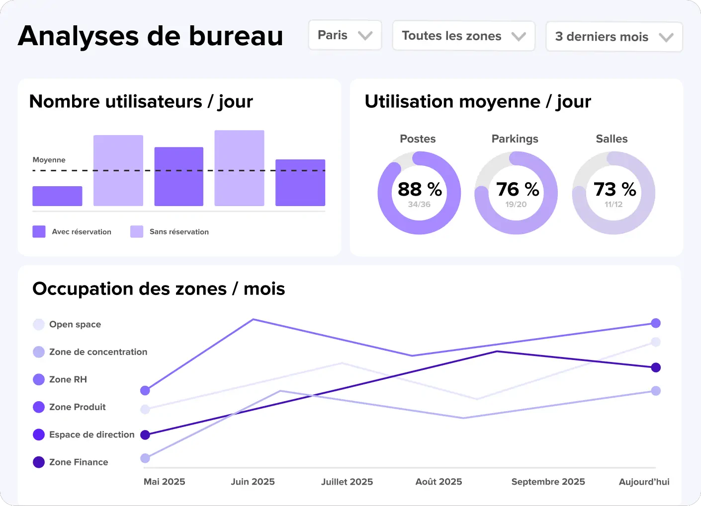 - Gagnez en clarté sur la façon dont chaque poste, salle ou zone est utilisé pour améliorer votre stratégie de lieu de travail