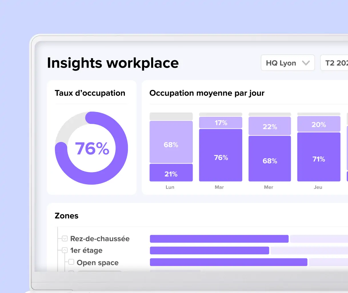La plateforme de travail hybride la plus intuitive pour réserver des postes, des salles de réunion et suivre l’usage des espaces en temps réel. Si simple que plus de 90 % des employés l’utilisent chaque jour, pour enfin disposer de données fiables.