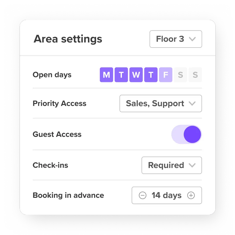 Absoluut. De hot desking software voor kantoren schaalt gemakkelijk over verdiepingen, gebouwen of regio's terwijl alles gesynchroniseerd blijft op één platform.